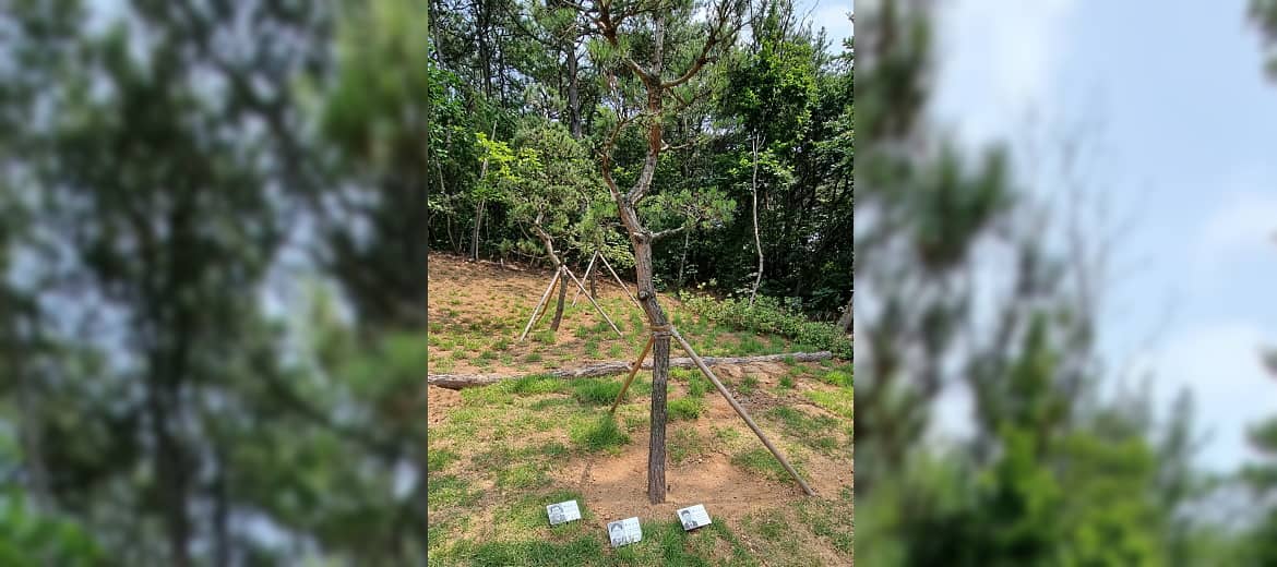 반송나무나 오엽송(나무종류는 수목장마다 다양함)